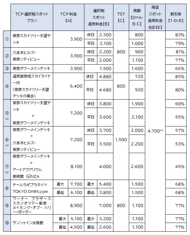【略称】 TCP:Tokyo City Pass、TST:Tokyo Subway Ticket